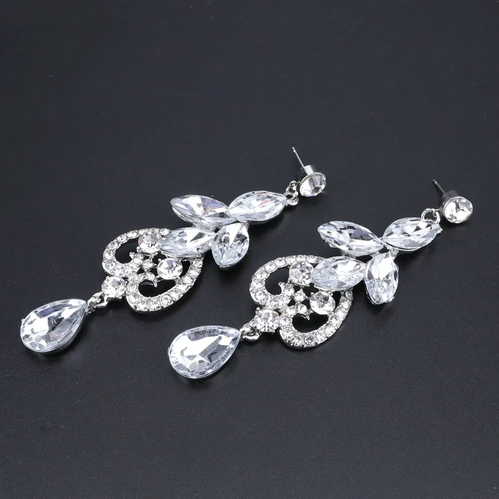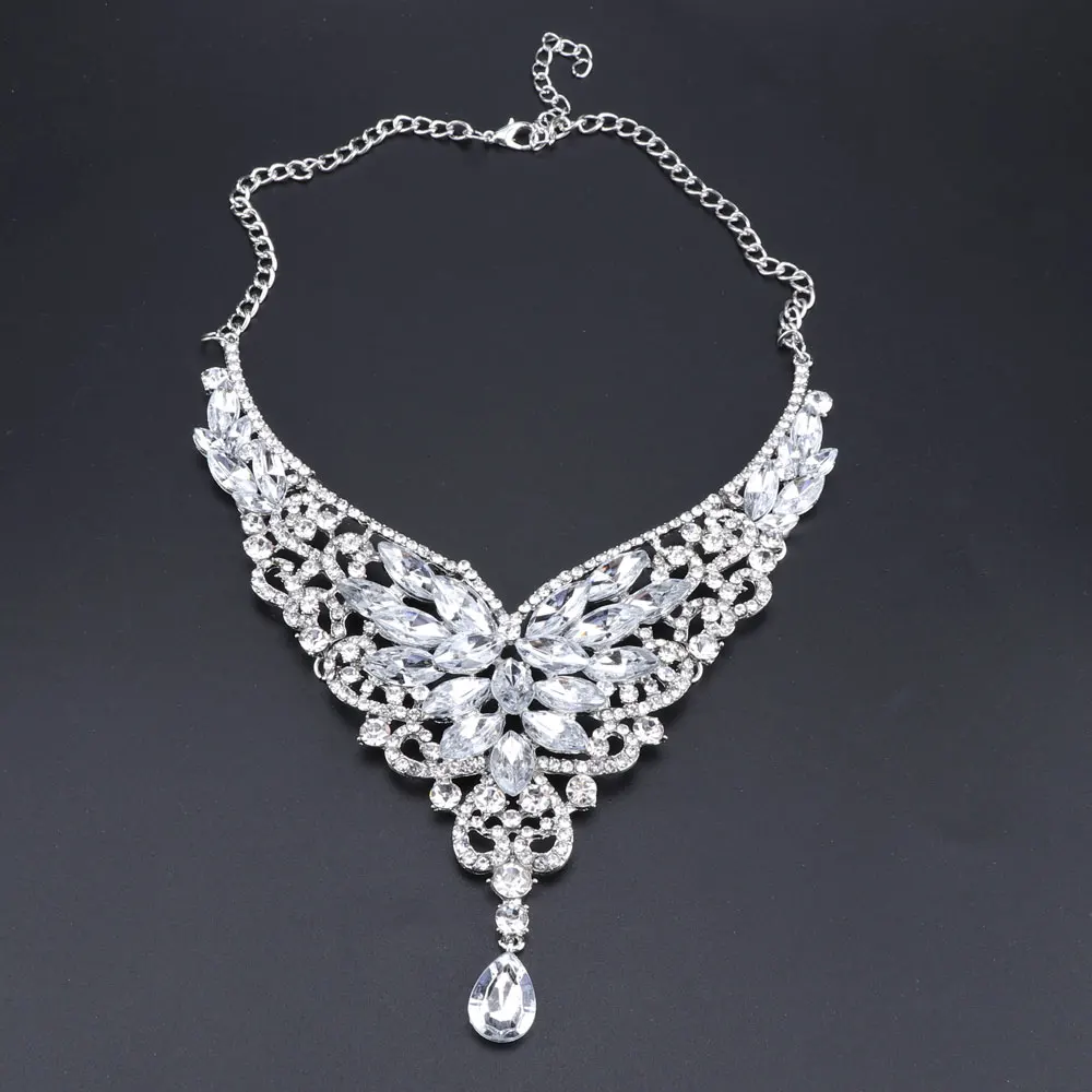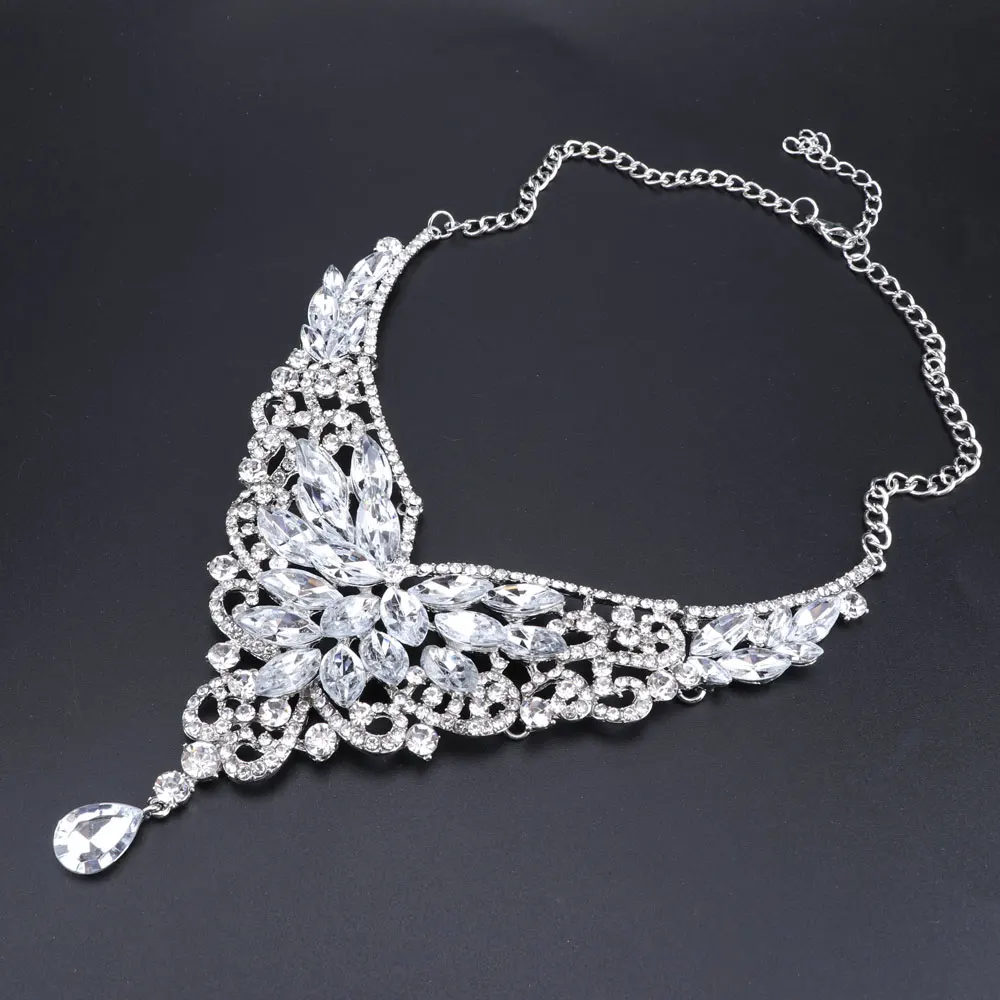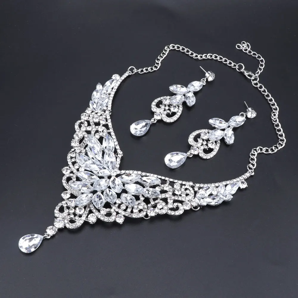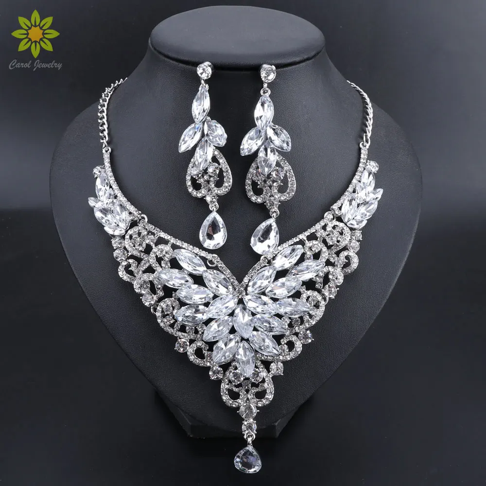 Best Fashion Crystal Bridal Jewelry Sets for Bride Necklace Earrings Wedding Party Costume Jewellery Set