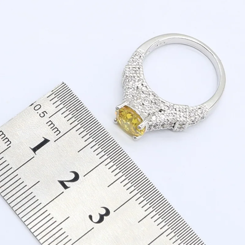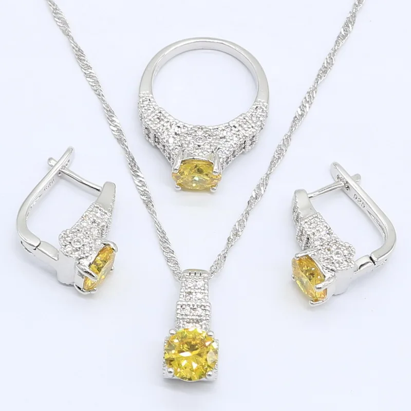 Promo 925 Silver Jewelry Sets For Women Yellow White Zircon Necklace Pendant Hoop Earrings Rings Gift Box